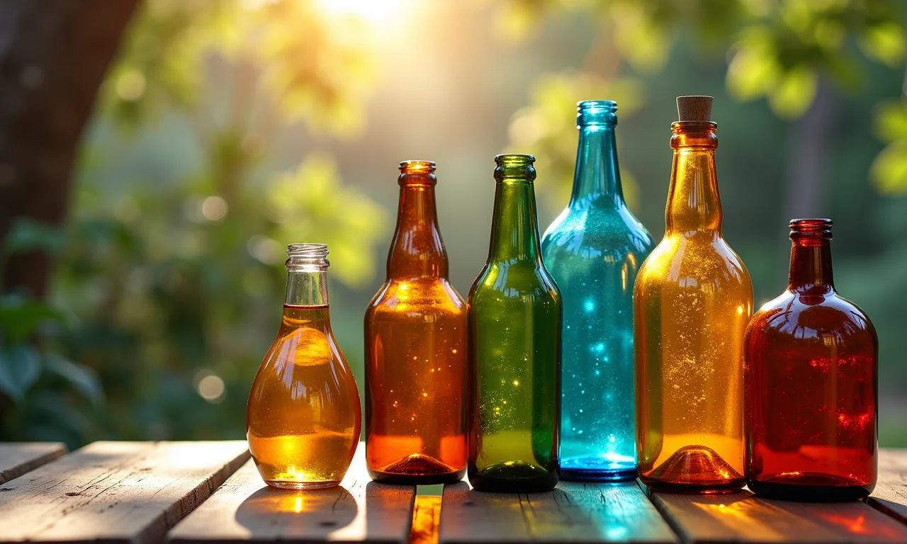 Decorações festivas criativas feitas com garrafas de vidro, ideais para celebrar momentos especiais.