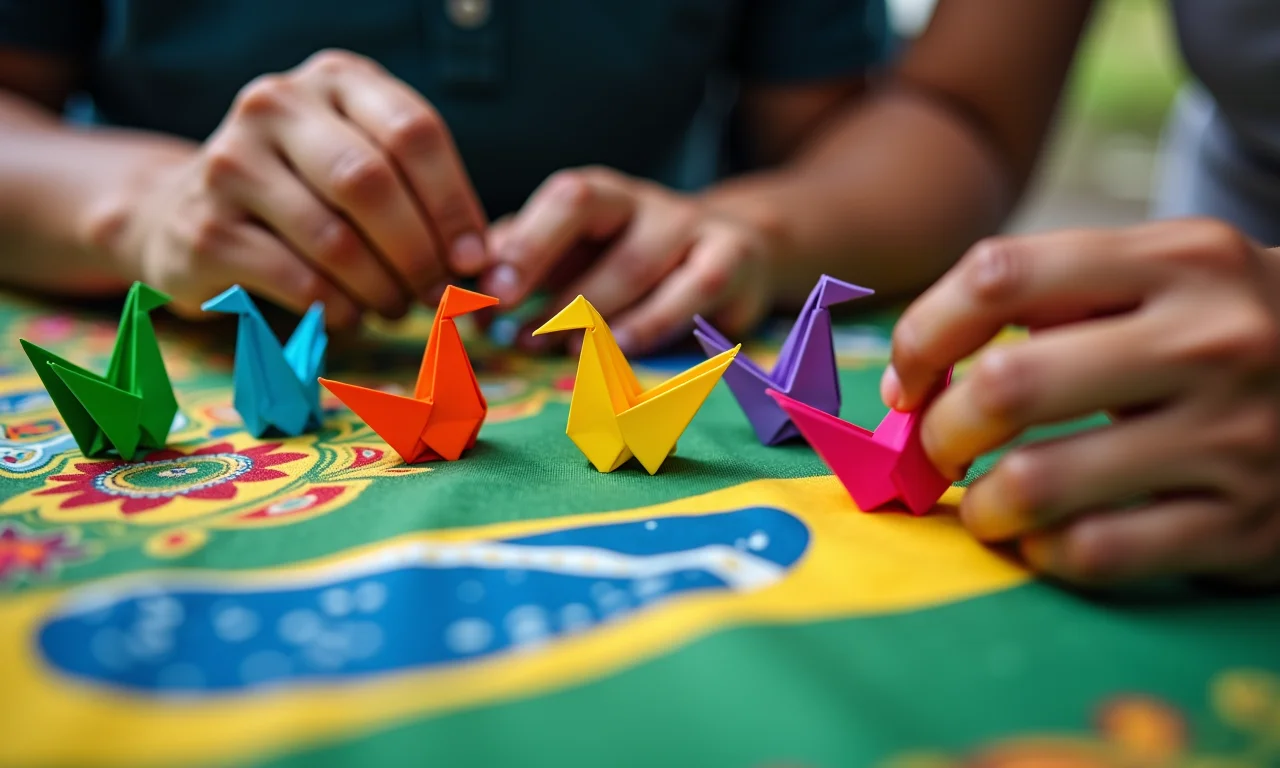 O origami, técnica japonesa de dobrar papel, é a base de muitos brinquedos. Imagina, com algumas dobras, você pode criar animais, flores e objetos! E fica tranquila, não precisa ser expert: existem modelos simples perfeitos para iniciantes. Que tal começar com um clássico tsuru (grou)?